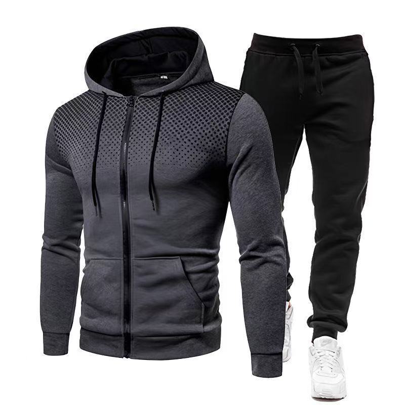 Cross-border foreign trade European and American polka dot print sweatshirt suit zipper shirt + trousers 2-piece set hooded sports suit solid color