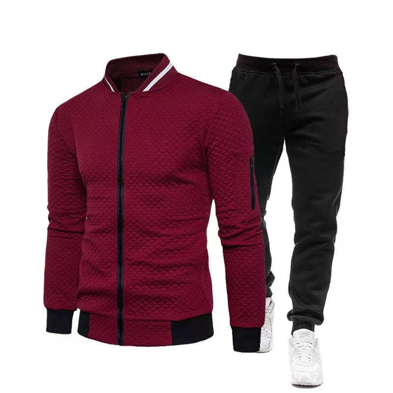 Autumn and winter fashion baseball jacket zipper stand collar sweatshirt jacket men's casual plaid cardigan solid color suit