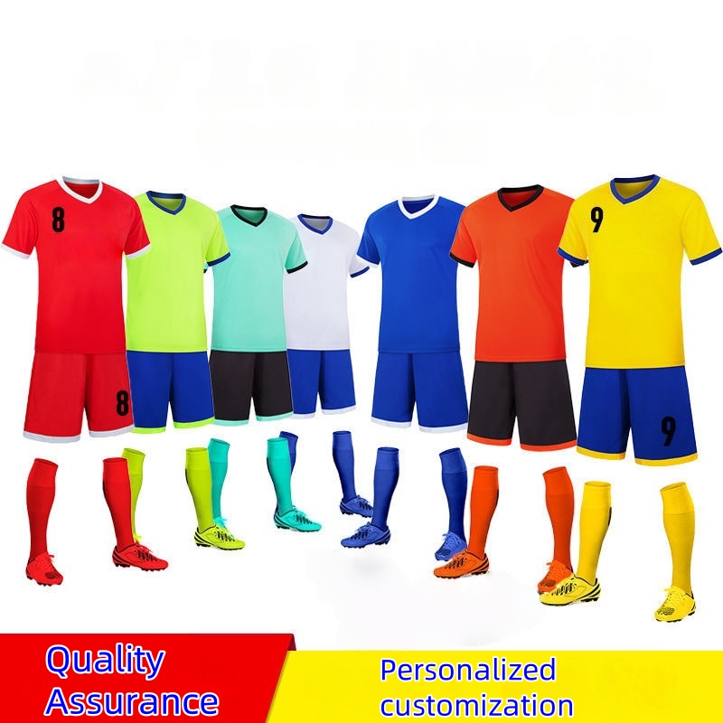 New summer running outdoor five-point football uniform round neck sweat-wicking casual men and women's printing number competition sports training team uniform