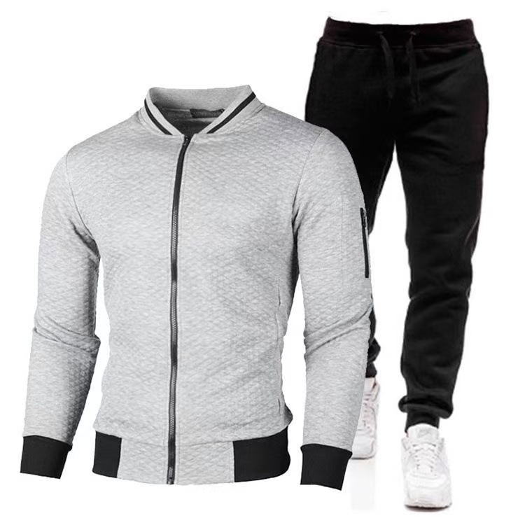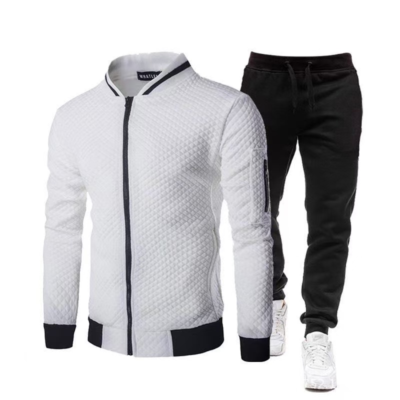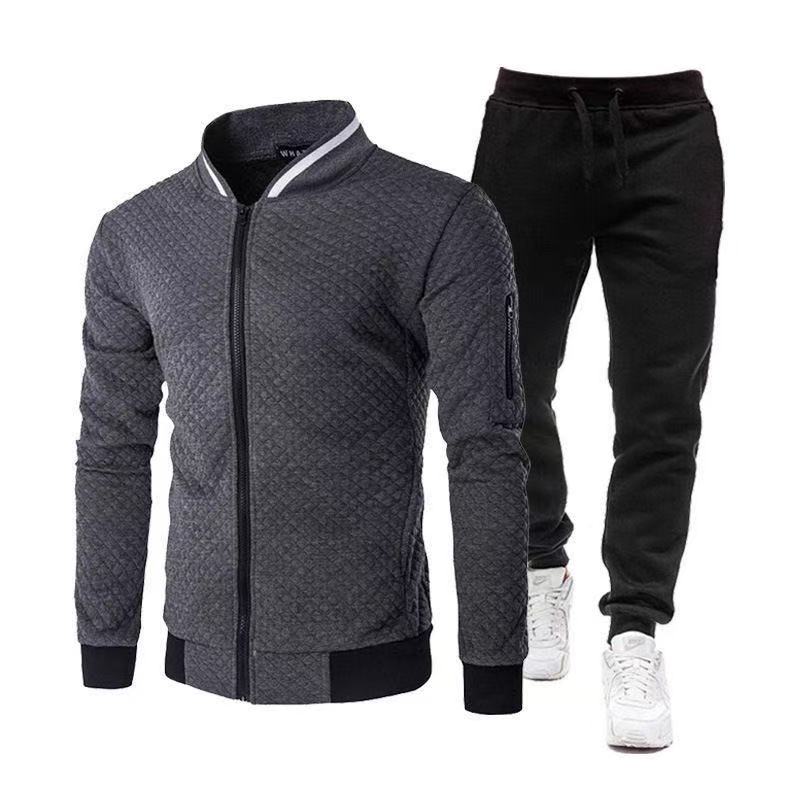 • Autumn and winter fashion baseball jacket zipper stand collar sweatshirt jacket men's casual plaid cardigan solid color suit