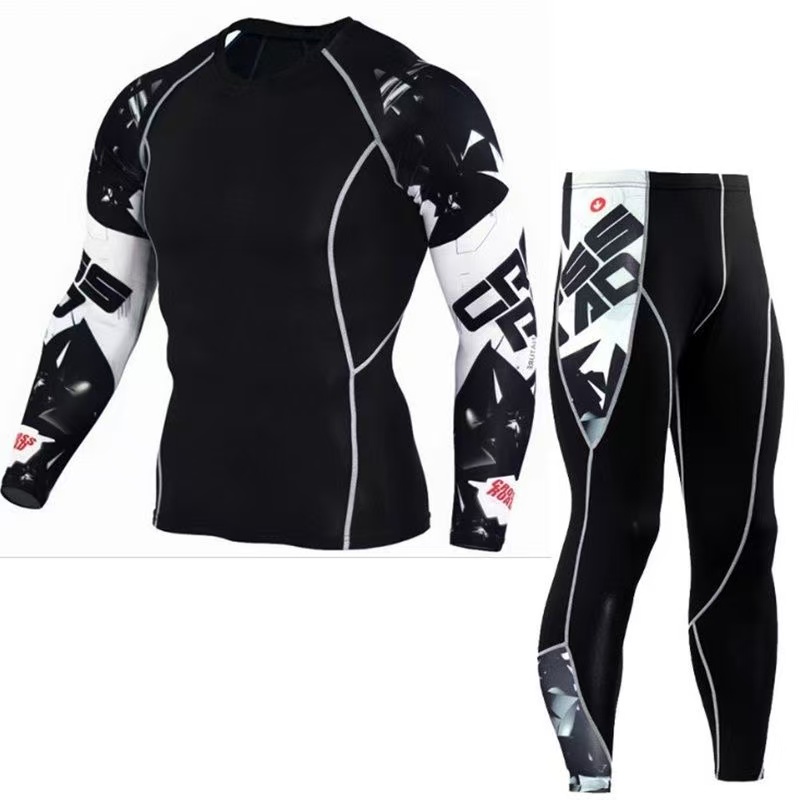 Fitness suit men's sports fitness clothes perspiration running marathon tight suit quick-drying high elastic two-three-four piece set