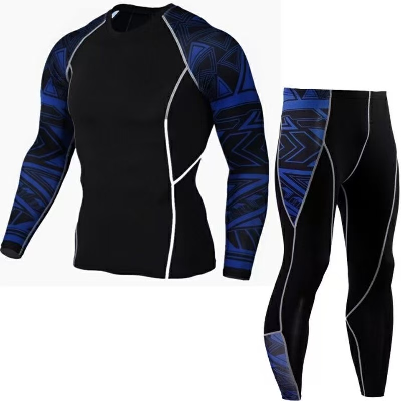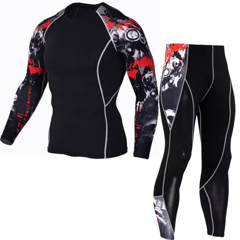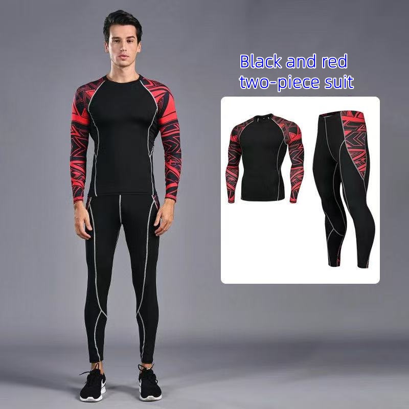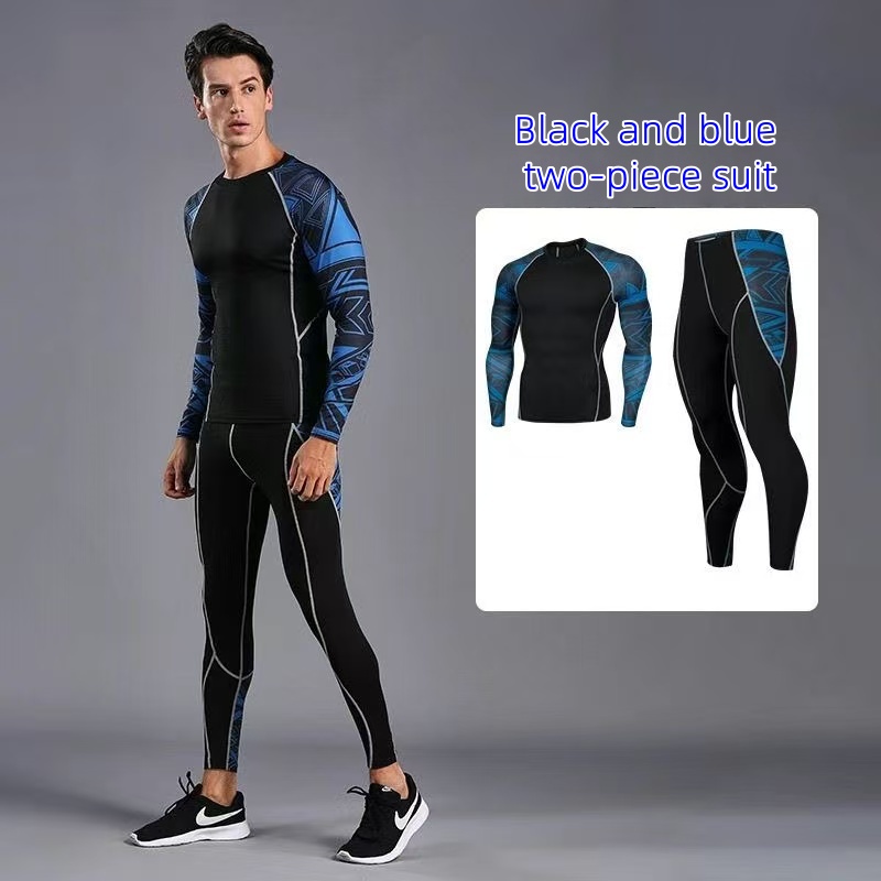• Fitness suit men's sports fitness clothes perspiration running marathon tight suit quick-drying high elastic two-three-four piece set