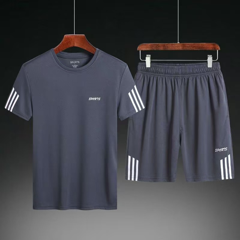 Summer sports suit men's short-sleeved sportswear youth shorts large size loose casual suit summer clothing trendy men